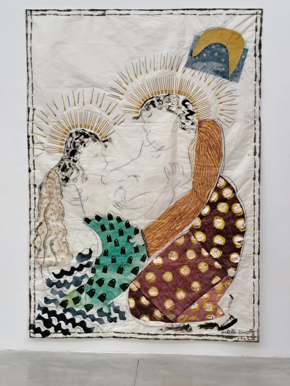 C’est interdit de toucher! (Pas vu de panneau mais je suppose!). Or, l’oeuvre de Isabella Ducrot est une ode au toucher. A la fois par ses sujets sur la tendresse et par les matériaux utilisés, papiers et textiles. On est donc en pleines contradiction et frustration!